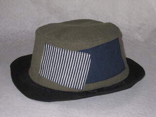 約57㎝ ウールbeige×黒×ジグ ワイヤー入りクシュハット998 9,800円(税込) | |  約59㎝ ウール黒×茶ツイード 6枚ハギハット 1015 11,800円(税込) | |  約57㎝ 麻黒×白線カーテン ワイヤー入りクシュハット1031 9,800円(税込) | |  約58㎝ green花柄×麻黒ライン タック入りツバ広ハット1082 15,800円(税込) |