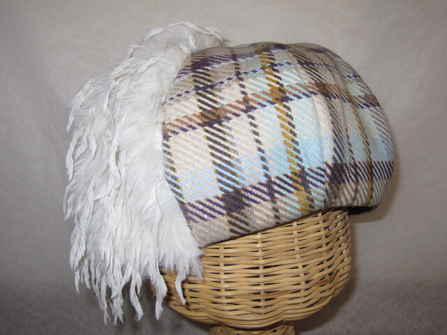 約57㎝ wool白チェック×白羽根付ファー 8枚ハギベレー318