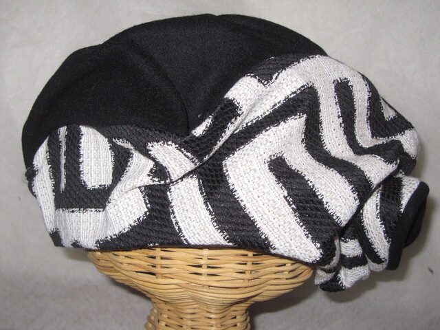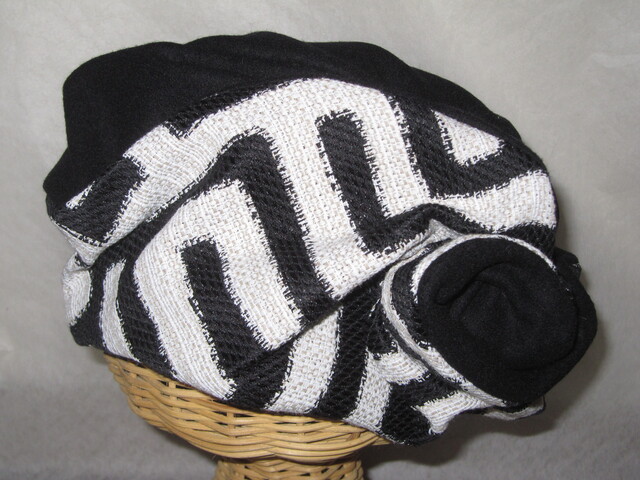 ~60㎝ wool黒×ITA白黒F柄 ワイヤー入り変形ベレー320
