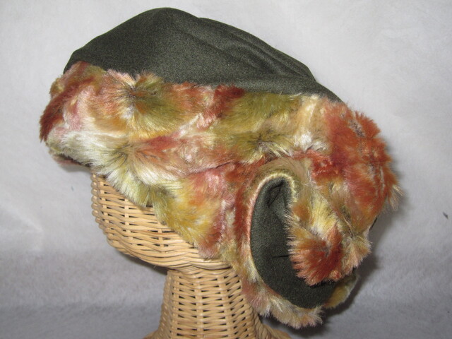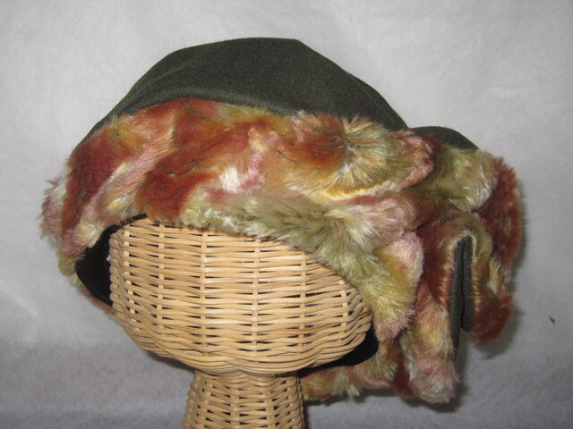 ~60㎝ woolカーキ×orangeマーブルファー ワイヤー入り変形ベレー32