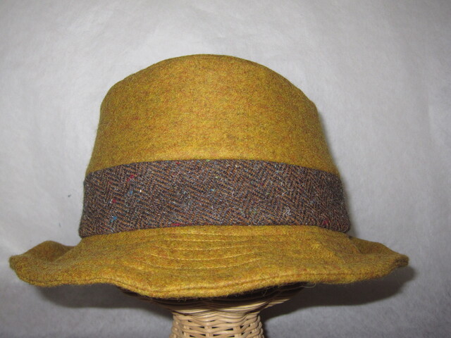 約58㎝ woolカラシ×ツイード茶 ワイヤー入り低めハット1272