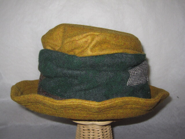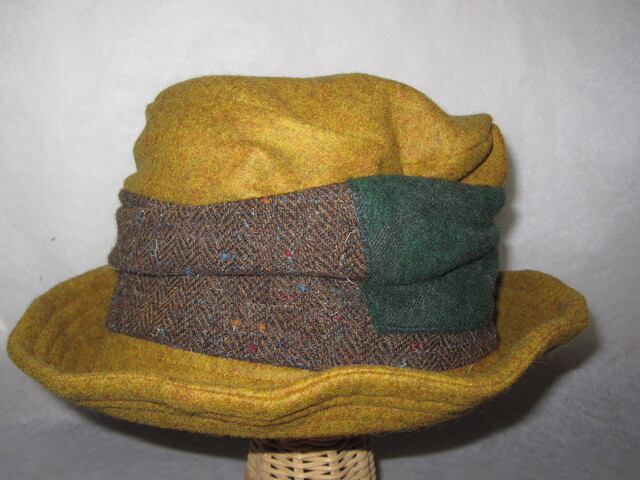 約57㎝ woolカラシ×ツイード茶 ワイヤー入りクシュハット1273