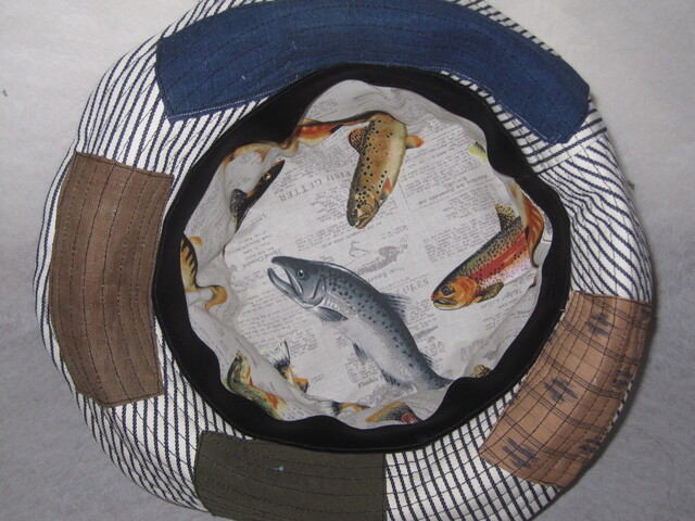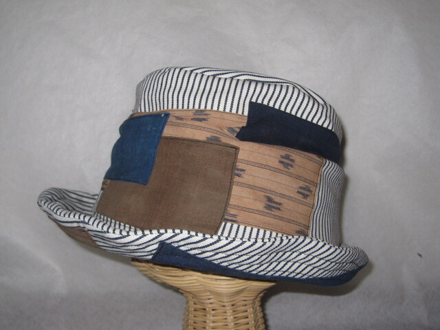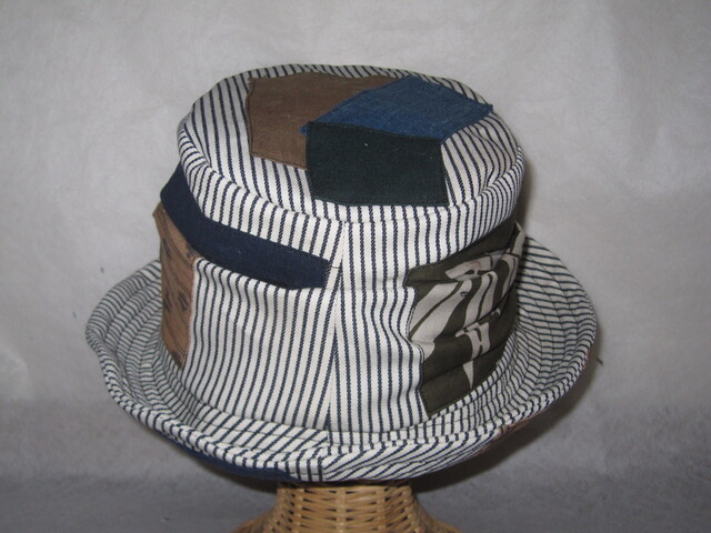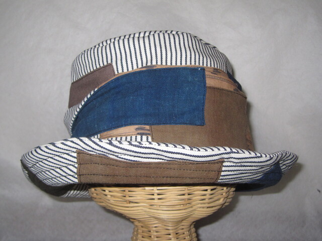 約57㎝ 白ヒッコリー×古布P ワイヤー入りクシュハット1277