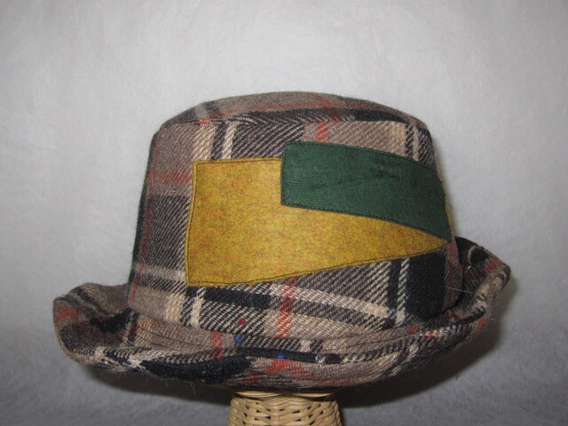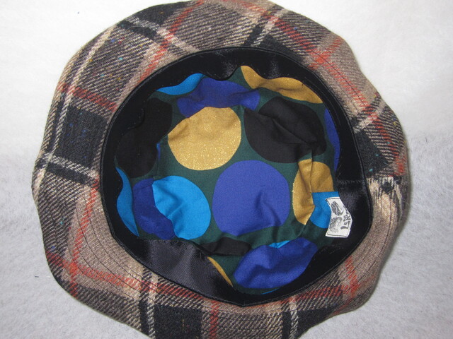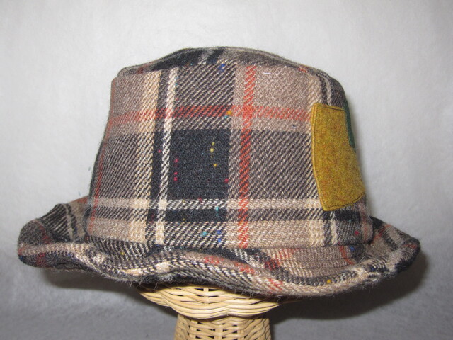 約58㎝ wool茶チェック ワイヤー入り低めハット1279
