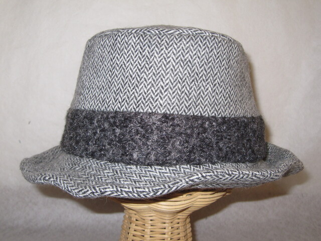 約56.5㎝ woolgrayヘリンボーン ワイヤー入り低めハット1280