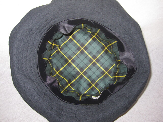 低くしたい場合は、サイドの生地を下に引っ張ると帽子の高さが変わります。