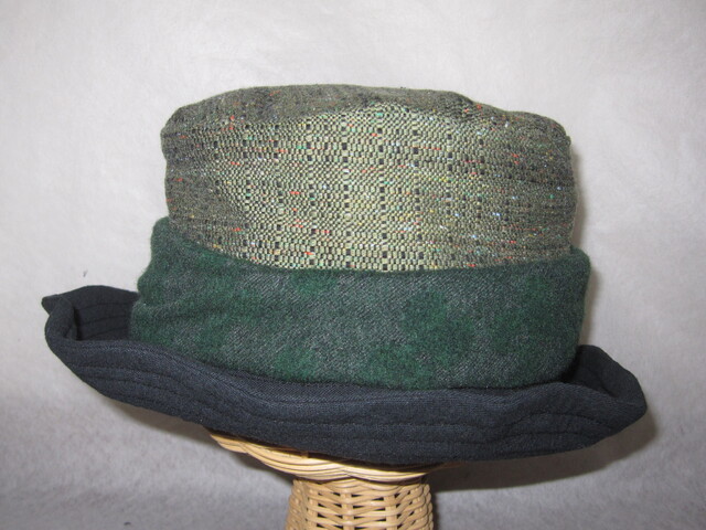 約56.5㎝ woolgreen×ツイードgreen×黒 ワイヤー入りクシュハッ