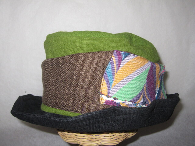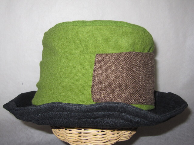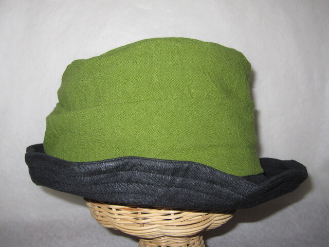 約58㎝ 綿麻green×麻黒 ワイヤー入りクシュハット1286