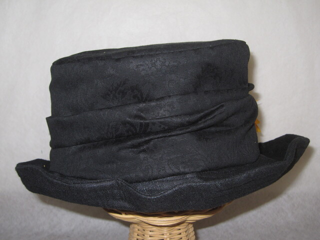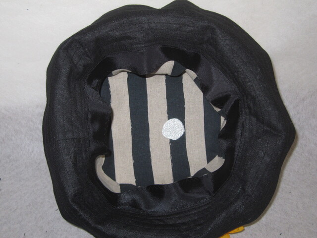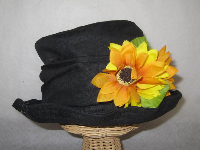 約57㎝ 黒花柄×黒麻×黄花 ワイヤー入りクシュハット1287