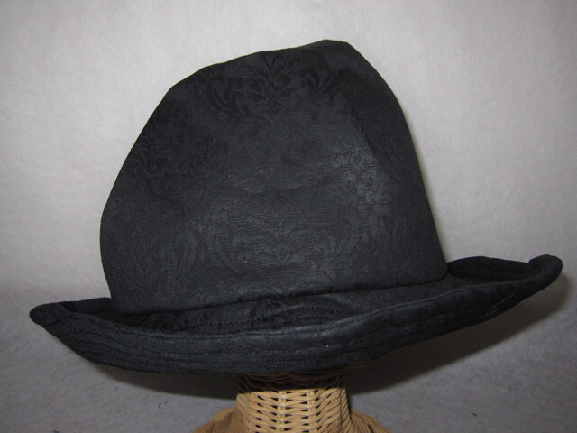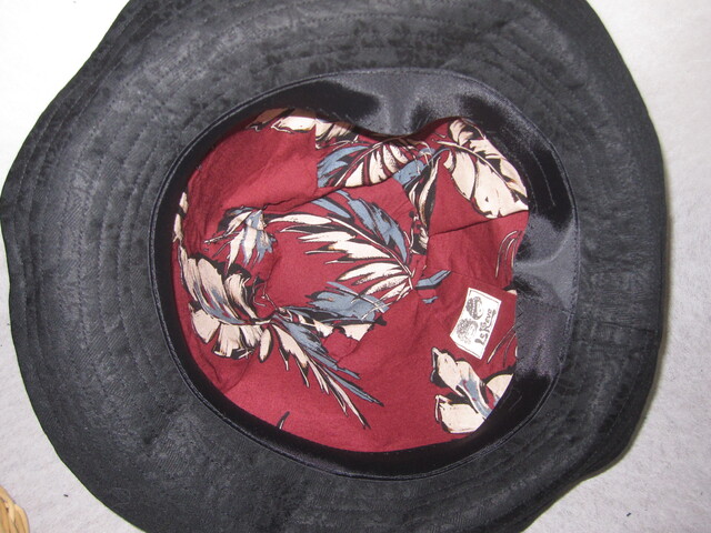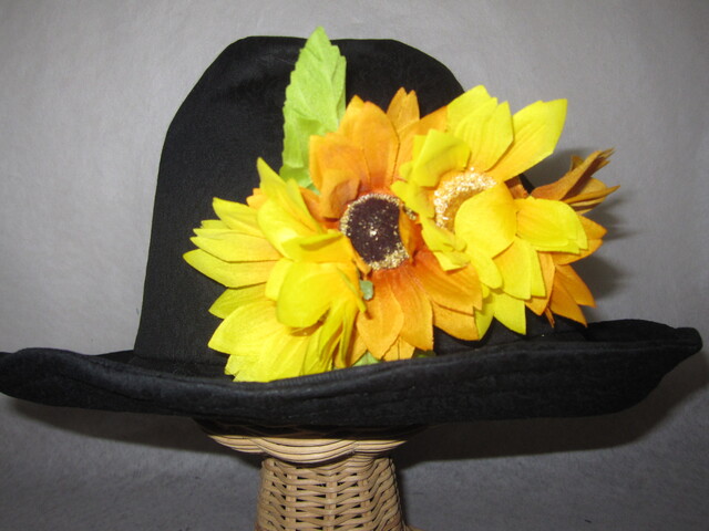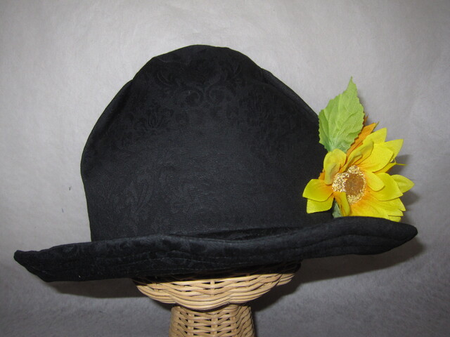約59㎝ 黒花柄×黄花 ツバ広タック入りハット1290