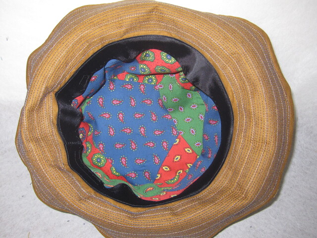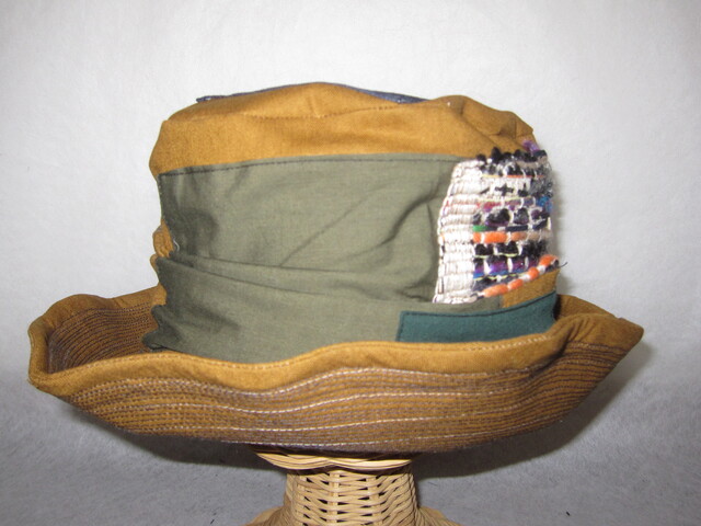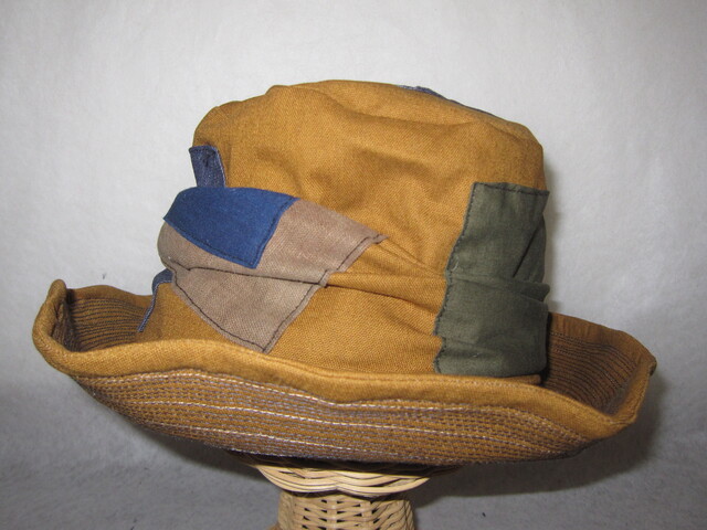 約57㎝ 綿麻camel×古布P ツバ広ワイヤー入りクシュハット1295