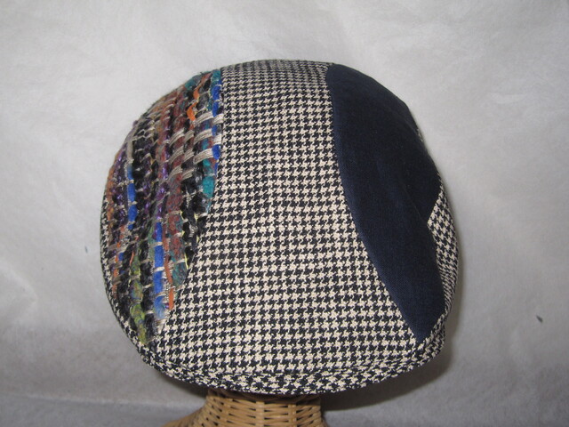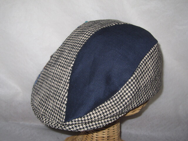 約58㎝ 白黒千鳥×greenツイード×navy 切り替えハンチング049