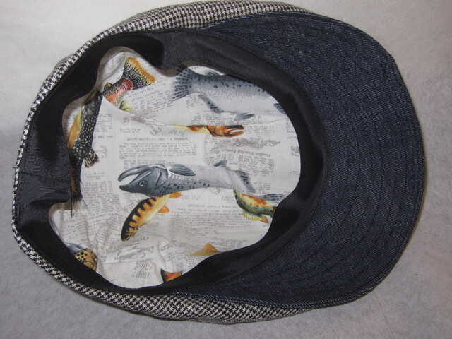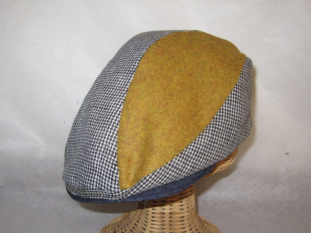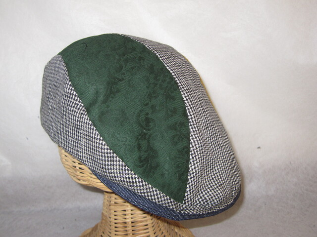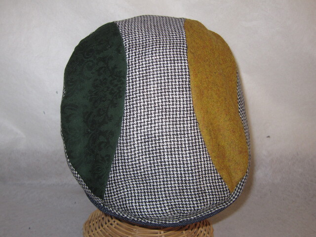 約57㎝ 白黒チェック×green×カラシ 切り替えハンチング050